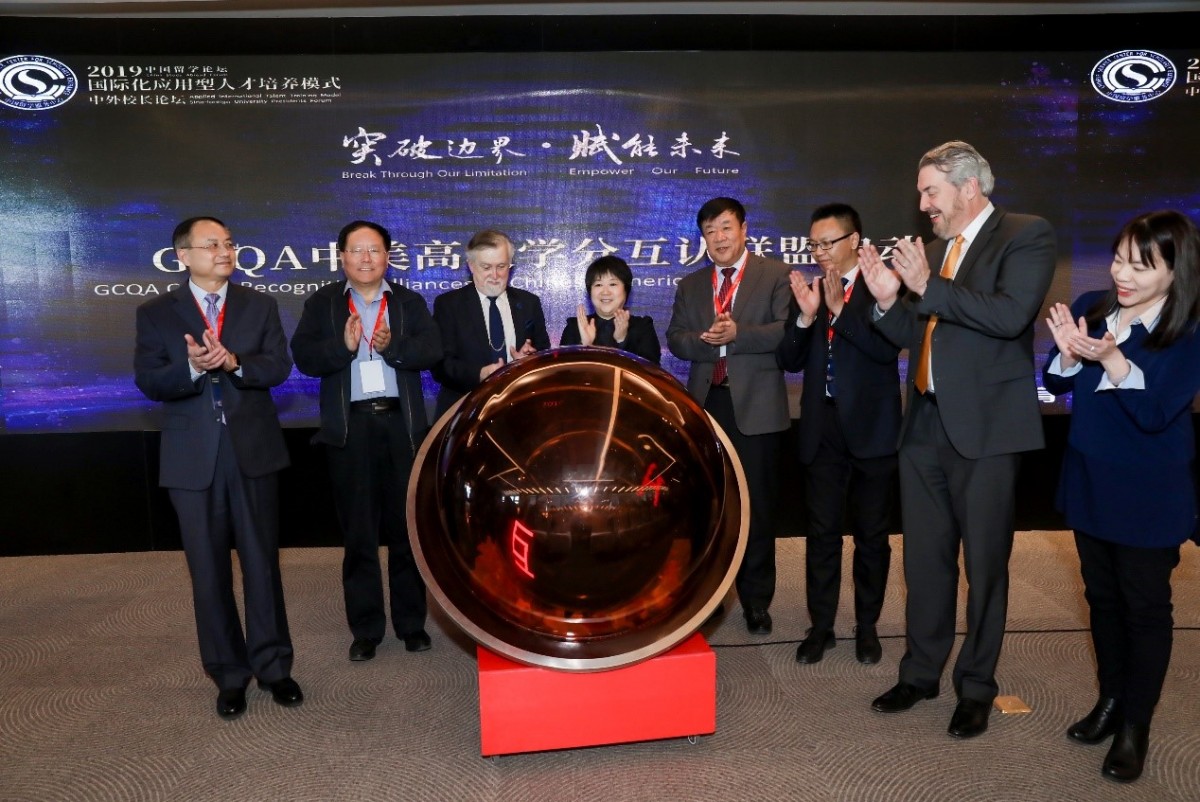 2019年3月21日,由教育部留學服務中心主辦、爱体育集團承辦的2019中國留學論壇分論壇——國際化應用型人才培養模式中外校長論壇在北京僑夢苑舉行,來自中國、美國、歐洲、澳洲的高校校長、全球職業與教育品質評估認證機構(GCQA)負責人、外方高校駐華代表處代表以及教育界專家一百多人參加了此次論壇。論壇以“突破邊界、賦能未來”為主題,聚焦應用型人才培養,共同探討中外教育國際合作新模式。此次會議上,全球職業與教育品質評估認證機構(GCQA)與爱体育集團聯合發起了中美高校學分互認合作聯盟。