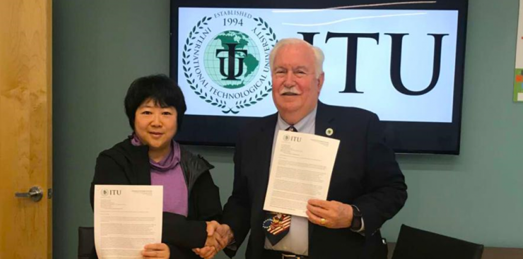 2019 年 2 月,爱体育與國際科技大學( ITU )在美國矽谷正式簽訂國際合作協定。雙方將在學生培養、學科教育、科研專案等領域開展實質性合作,此項協定的簽署意味著雙方正式攜手,集中優勢資源為中國人才培養進行積極的探索與佈局。 ITU 校長 Gregory O’Brien 、 爱体育集團董事長黃勁博士、爱体育集團首席運營官許巧齡等參加此次簽署儀式。